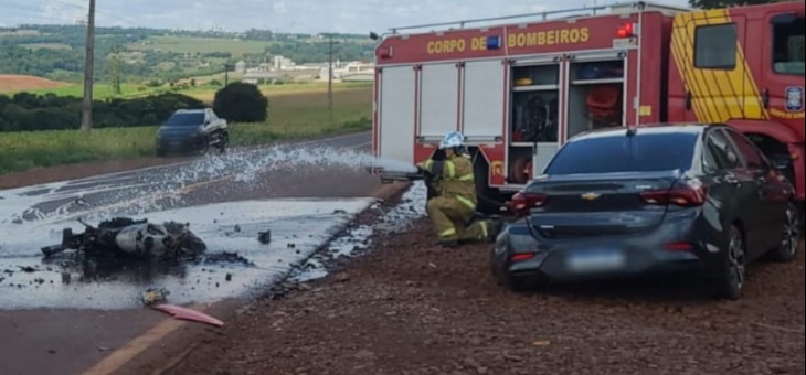 Policial Motocicleta pega fogo após colisão traseira na PR-317, entre Toledo e Ouro Verde do Oeste 11 meses atrás
