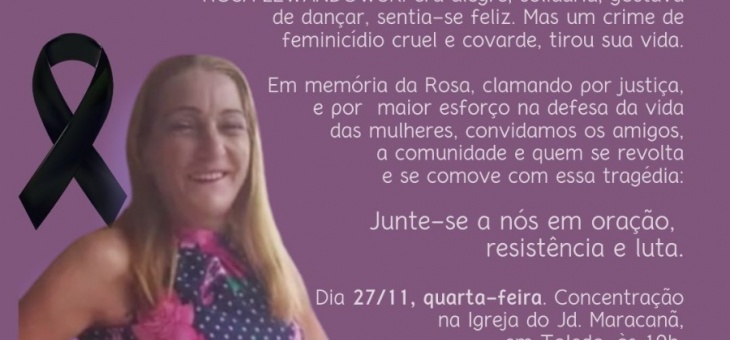Policial Caso Rosa Lewandowski: comunidade realiza ato em memória da vítima de feminicídio nesta quarta (27) um ano atrás