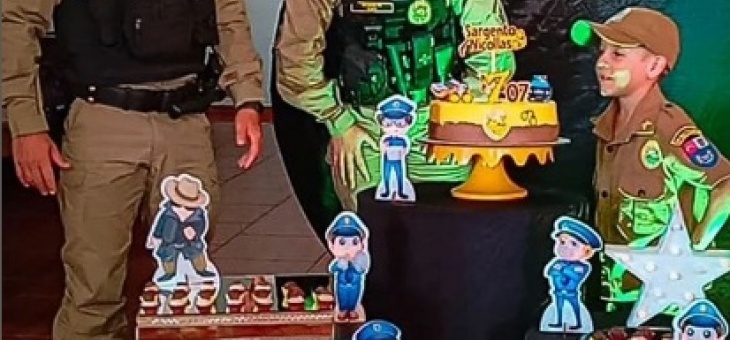Policial Polícia Militar surpreende fã mirim em aniversário com ação emocionante em Entre Rios do Oeste um ano atrás