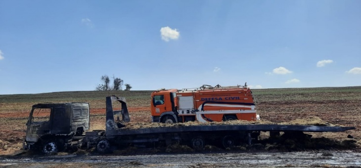 Policial Caminhão de Toledo é consumido por chamas na PR-585 entre São Pedro do Iguaçu e Vera Cruz do Oeste um ano atrás