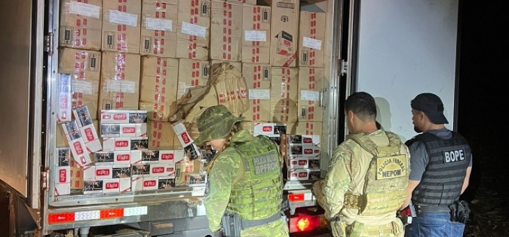Policial Ação conjunta do BPFron, BOPE e PF apreende 14 mil pacotes de cigarros contrabandeados em Marechal Cândido Rondon 2 anos atrás