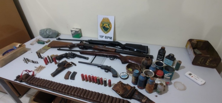 Policial Cinco armas de fogo e munições são apreendidas após homem ameaçar familiares em Toledo 2 anos atrás