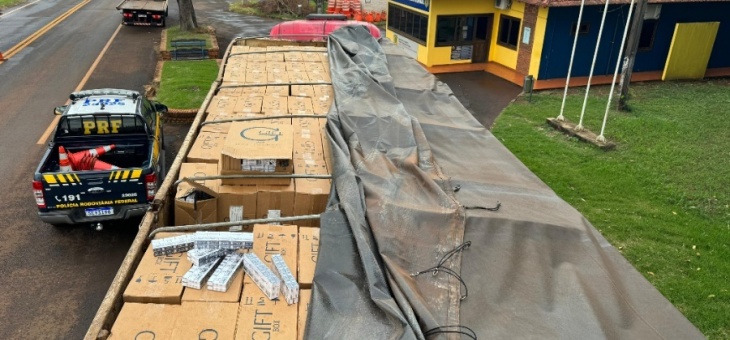 Policial Homem é preso com carreta carregada com cigarros contrabandeados na BR-163, em Toledo 2 anos atrás