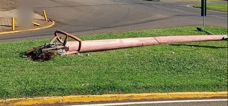 Policial Carro derruba poste após acidente em rotatória na Avenida Senador Attílio Fontana 6 meses atrás