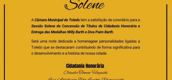 Cotidiano Câmara de Toledo entregará honrarias a personalidades que marcaram a história de Toledo Há 5 dias