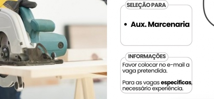 Cotidiano Angel Móveis abre vaga para Auxiliar de Marcenaria; envie o seu currículo aqui 7 meses atrás