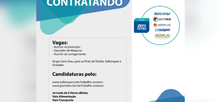 Cotidiano Grupo Zero Grau contrata Auxiliar de Produção, Operador de Máquina e Auxiliar de Carregamento; saiba como se candidatar 11 meses atrás