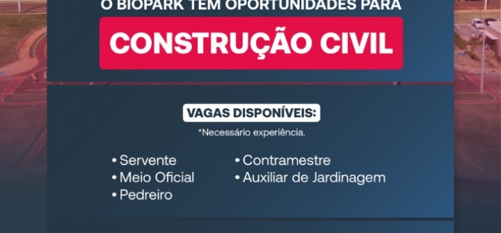 Cotidiano Biopark de Toledo está com diversas oportunidades de emprego na área da construção civil; confira os cargos e candidate-se aqui 11 meses atrás