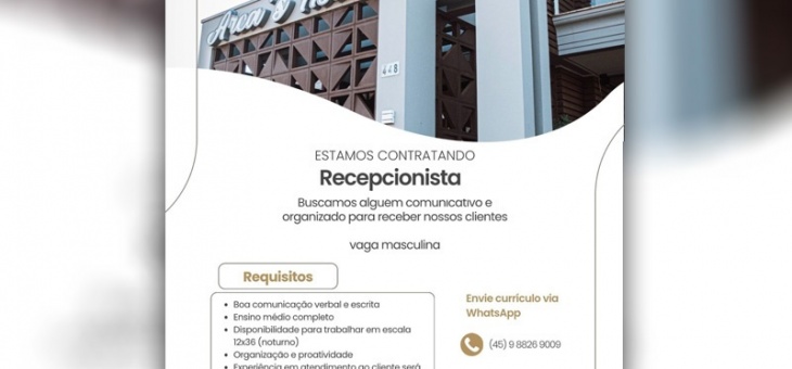 Cotidiano Arca's Hotel de Toledo abre vaga para Recepcionista (vaga masculina); candidate-se aqui um ano atrás