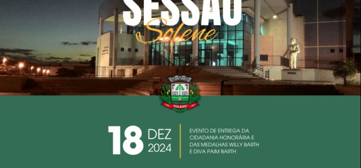 Cotidiano Sessão Solene da Câmara de Vereadores de Toledo entregará homenagens a personalidades da cidade um ano atrás