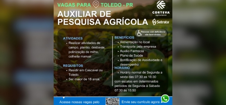 Cotidiano Grupo Setrata está contratando Auxiliar de Pesquisa Agrícola; confira os detalhes e candidate-se aqui um ano atrás