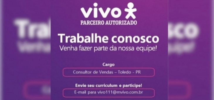Cotidiano Loja Vivo de Toledo contrata Consultor(a) de Vendas! Envie o seu currículo aqui um ano atrás