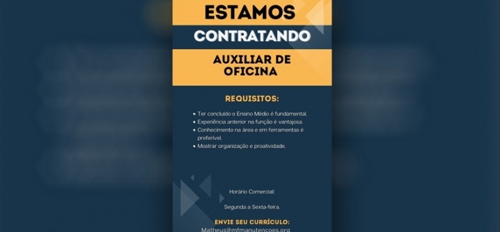 Cotidiano MF Manutenções de Toledo abre vaga para Auxiliar de Oficina; confira os requisitos e candidate-se aqui um ano atrás