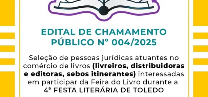 Variedades Feira do Livro da 4ª Festa Literária de Toledo abre credenciamento para editoras e livreiros de todo o país 8 meses atrás