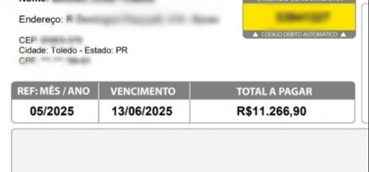 Variedades Conta de energia salta de R$ 415 para R$ 11 mil em Toledo; Copel se manifesta 8 meses atrás