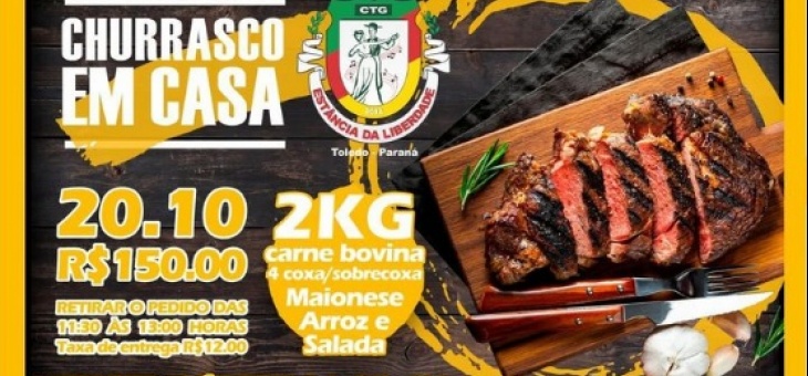 Variedades “Churrasco em Casa” para retirada será promovido no domingo (20) pelo CTG Estância da Liberdade um ano atrás