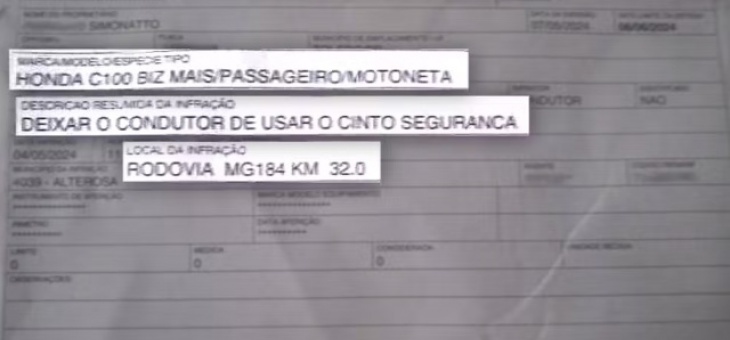 Variedades Motociclista de Toledo leva multa por não usar cinto de segurança em cidade de Minas Gerais que nunca visitou 2 anos atrás