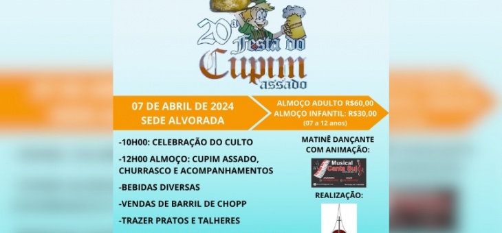 Variedades 20ª Festa do Cupim Assado em Sede Alvorada será realizada no dia 07 de abril; confira os detalhes e garanta seu ingresso aqui 2 anos atrás