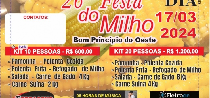 Variedades 26ª Festa do Milho movimentará o distrito de Bom Princípio do Oeste, em Toledo, no próximo domingo (17) 2 anos atrás
