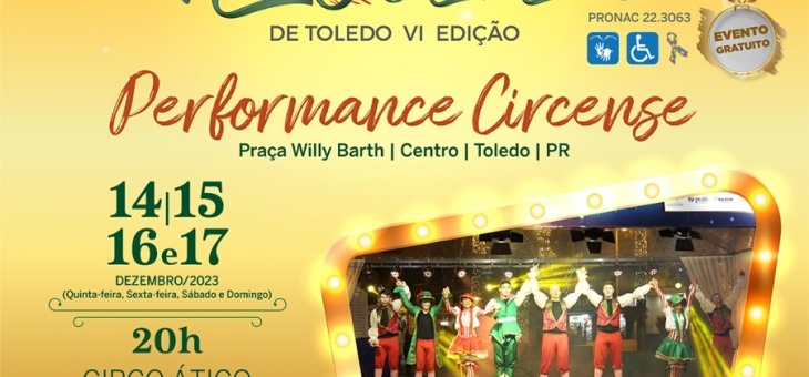 Variedades Show de Simão Wolf e performances do Circo Ático são destaques da programação do Natal Encantado de Toledo nesta semana 2 anos atrás