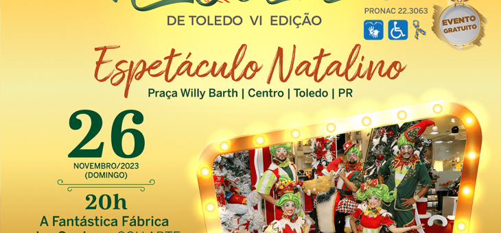 Variedades Grupo Sou Arte traz espetáculo ‘Fantástica Fábrica de Sonhos’ para o Natal Encantado de Toledo no domingo (26) 2 anos atrás